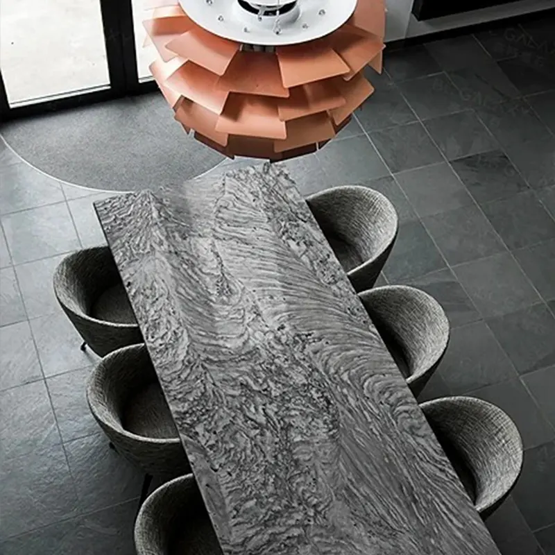 デザインの適応性:DesignWise、この灰色の石英岩スラブは、最小限と最大のインテリアの両方に適合します。モダンなバスルームの劇的なセンターピースとして使用されていても、スカンジナビアのキッチンで控えめなニュートラルとして使用されるかどうかは、常に輝きます。