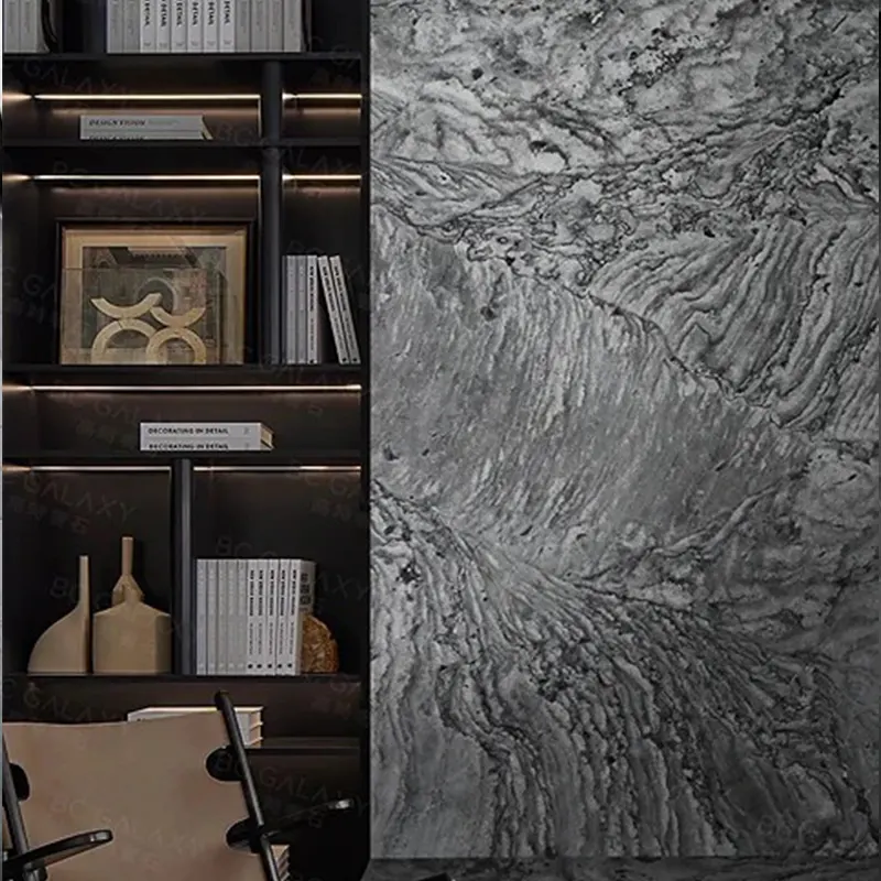 控えめな青いトーンと深い濃い灰色の脈の魅惑的なミックスで知られる天然の石英岩スラブは、アダマンティンの石英です。ブラジルの採石場から引っ張られ、その珍しい外観と驚くべき強さが高く評価されています。この灰色の石英岩石は、花崗岩の耐久性と大理石の視覚的な魅力を組み合わせているため、ビジネス環境とホーム環境の両方のトップグレードの選択です。