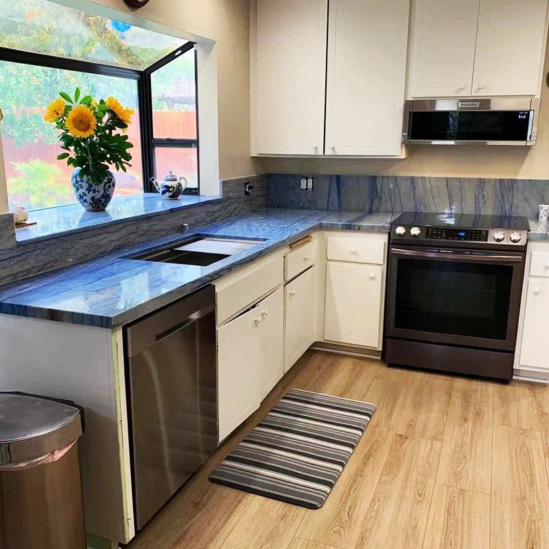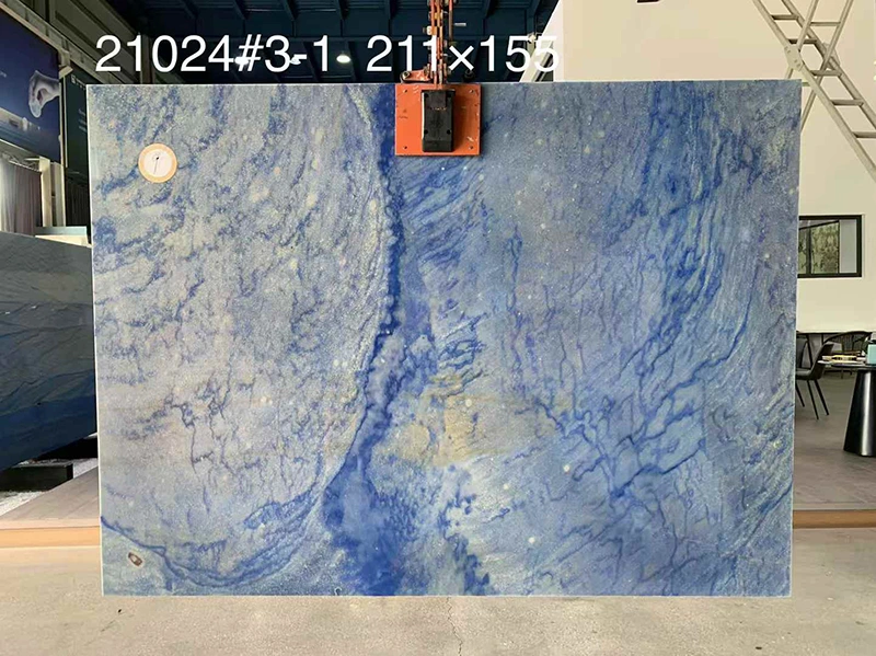 Azul Imperial Quartziteテーブルトップは、インテリアデザインで自然なコンポーネントを使用するという増加傾向に沿ってますます人気があります。 Azul Imperial Quartziteは、より多くのデザイナーや住宅所有者が自然の石の美しさを高く評価するため、特に優れています。モダンからクラシックまで、その輝かしい青色のトーン、独特のパターン、適応可能な仕上げにより、自然にデザインスタイルの素晴らしいスペクトルに混ざり合っています。