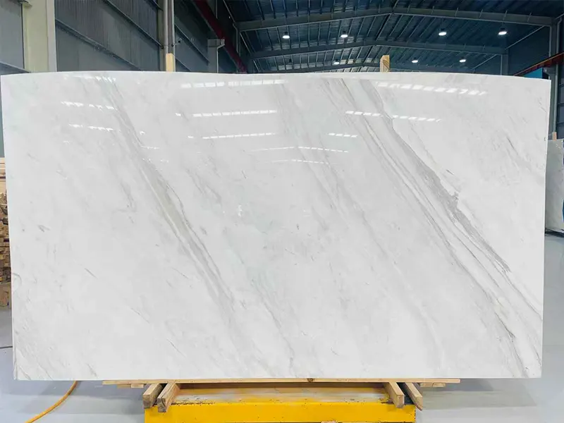 Particularly in Western and Middle Eastern markets, volakas marble countertops, white marble island kitchen, and white marble island countertop designs are growingly sought after. In these high-traffic areas, Jazz White Marble provides both the look and durability required. Its polish makes it perfect for a seamless white marble backsplash kitchen feature, and it's great for white marble countertops in bathrooms and kitchens.