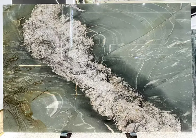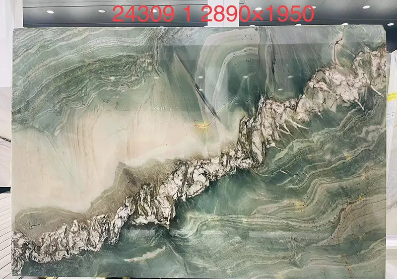 ブラジルの人気のある天然の緑色の石英であるMaestro Green Quartziteは、光と暗闇の間に遷移するユニークな色を備えたユニークで美しい石です。その高い硬度、優れた安定性、および汚れの抵抗は、それをユニークな傑作にします。その繊細な静脈は、自然によって作られた水彩画に似た、ユニークな傑作になります。 製品名:Maestro Green Quartziteスラブ 工場:Xiamen Wow Stone Co.、Ltd。 起源の国:ブラジル MOQ:1 PC 表面:磨かれた、磨かれた 使用法:壁や床のタイル、カウンタートップ、虚栄心、階段、コラム、モザイクなどで一般的に使用される内部および外部装飾に汎用性が高く、さまざまな建設および設計プロジェクトに最適です。