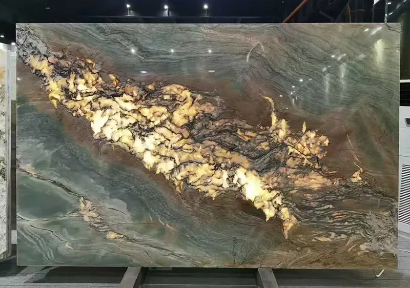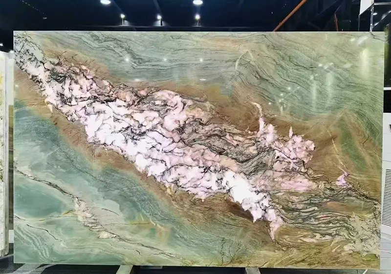 Maestro Green Quartziteの独特の緑色のトーンと複雑な変化する静脈は、それを他の石英と区別します。このユニークさは、それをクラシックとして適格にします。バスルームでは、エリアを緑の楽園に変えます。キッチンでは、デザインを強調します。リビングルームでは、Quartziteの暖炉の周りでも上品な焦点になります。