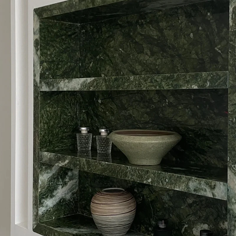 Wow Stone specializes in high-quality Chinese marble, including Ming Green Marble Slabs and other premium verde marble slabs. Our live video inspections let consumers verify slab quality before buying since we have more than 1000 square meters of Ming Green Marble Slabs in stock. Our bespoke fabrication solutions, supported by a rigorous quality control staff, guarantee the ideal fit for every design. Our design help, free samples, and 24/7 online support. Our dependable worldwide delivery helps you to easily bring this lovely marble to your work.