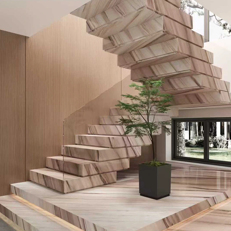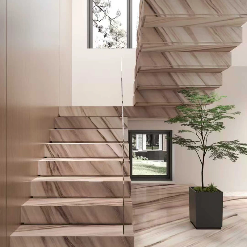 Palissandro Classico Marble-Clad Grand Staircasesは、家を別荘に変えることができます。視覚的な調和は、あるステップから次のステップに走る穏やかな灰色の静脈によって生成されます。パリサンドロビアンコのイタリアの大理石の暖炉は、快適なリビングエリアに洗練された選択肢です。