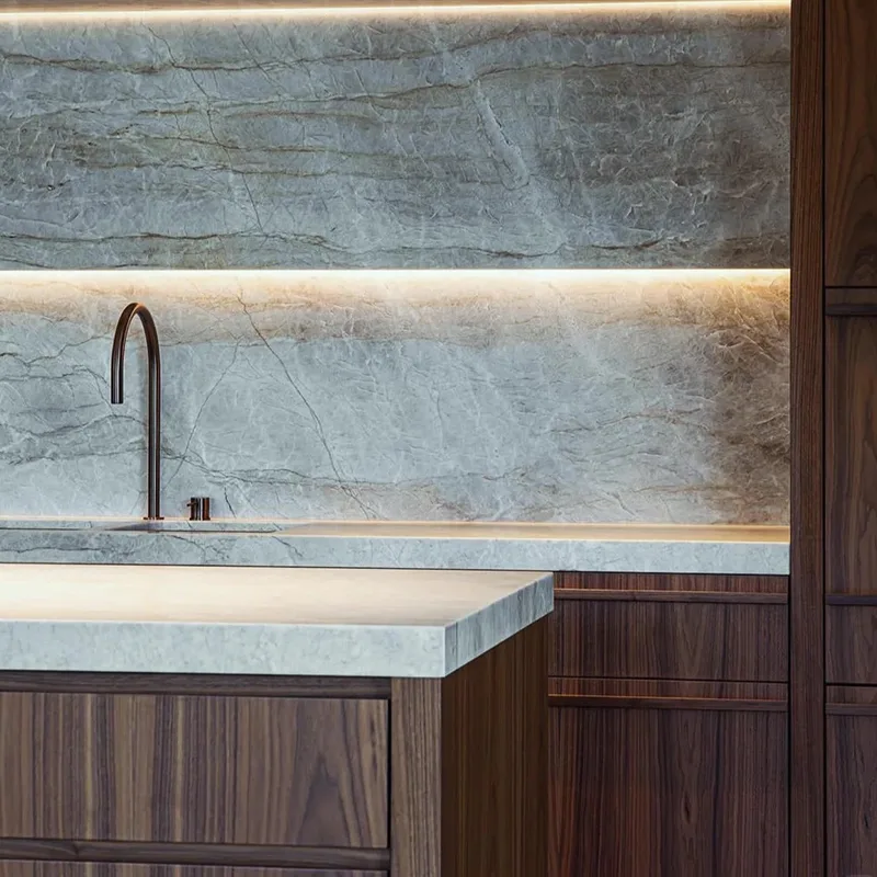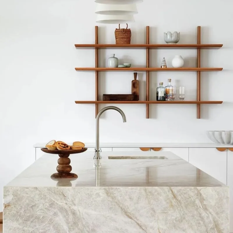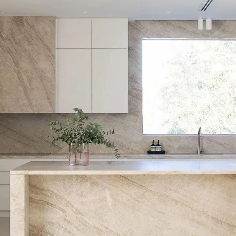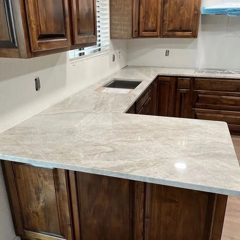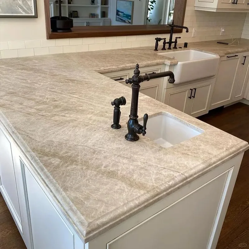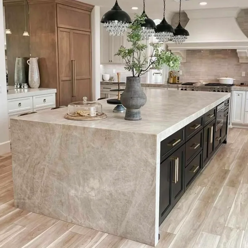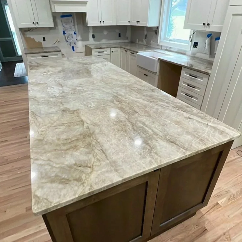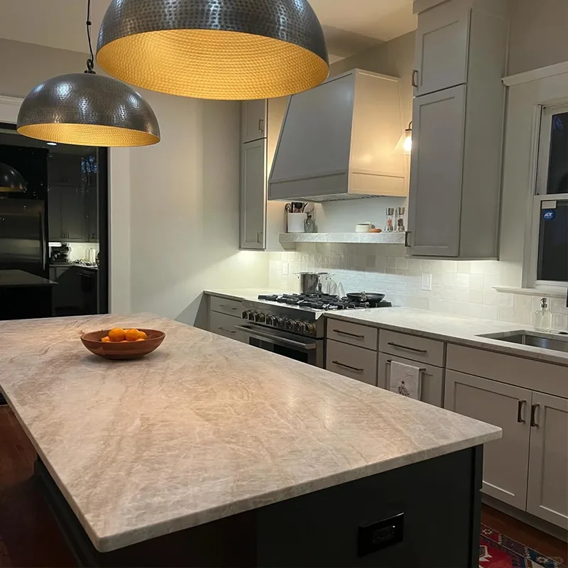 住宅所有者は、キッチンの改修で美しく、実用的なものの間で引き裂かれることがよくあります。 Taj Mahal Quartzite Kitchenカウンターこの問題は非常にうまく解決します。石の軽いニュートラルなトーンは、大胆なモダンなスタイル、暖かい木製のキッチンキャビネット、白いキッチンスタイルのミニマリストの白でさえもうまく機能することを意味します。