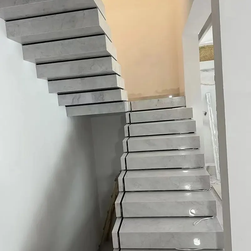 Yabo White Marbleは、階段のデザインで特にうまく機能します。その一貫した品質と強力な構造により、屋内の階段に最適であるため、空間の流れ全体が向上します。白い大理石のインテリアハウスプロジェクトでは、これらの階段が前のステージになります。